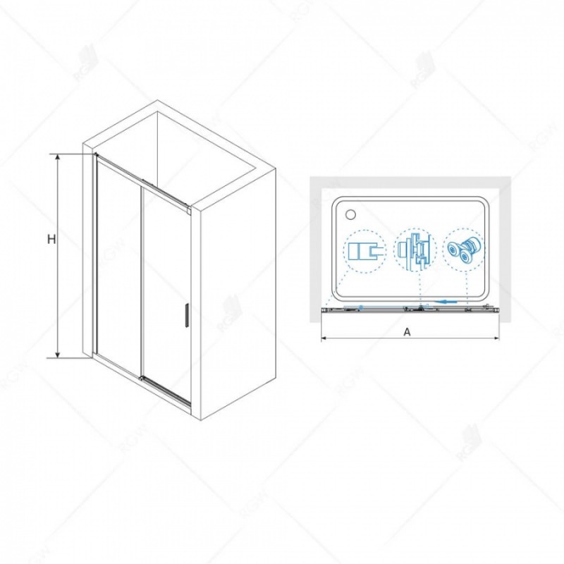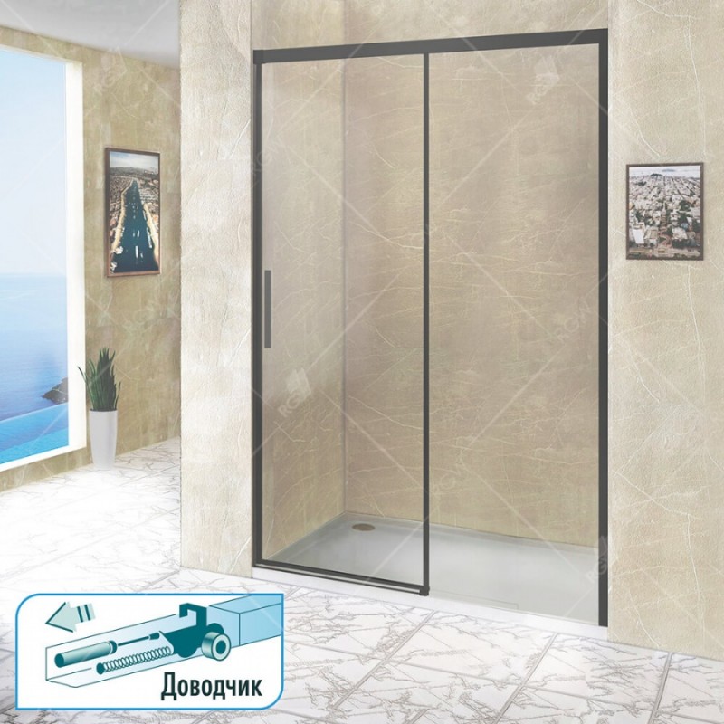 Душевая дверь с закаленным прозрачным стеклом 6 мм, с роликовым механизмом оснащенные автодоводчиком. Поддон приобретается отдельно.