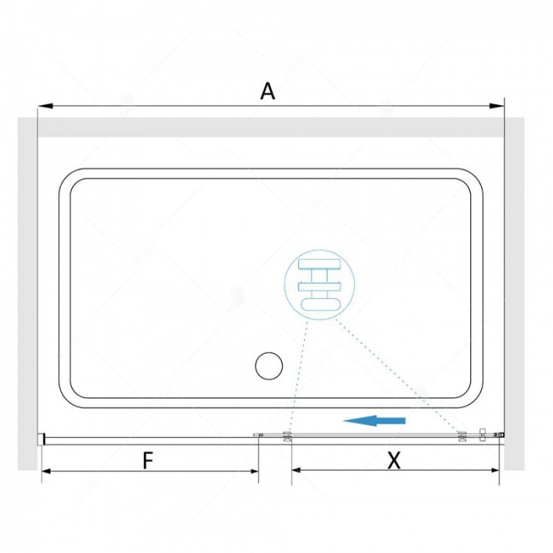 Душевая дверь раздвижная от стены. Ручка алюминиевая. Трап или поддон приобретается отдельно.